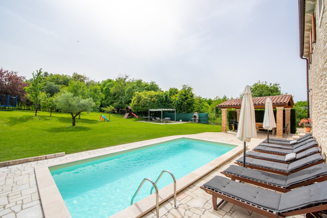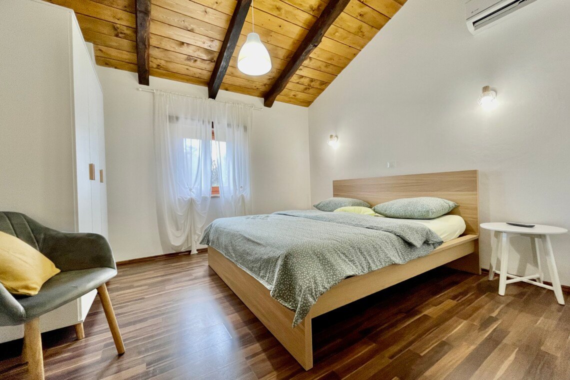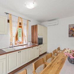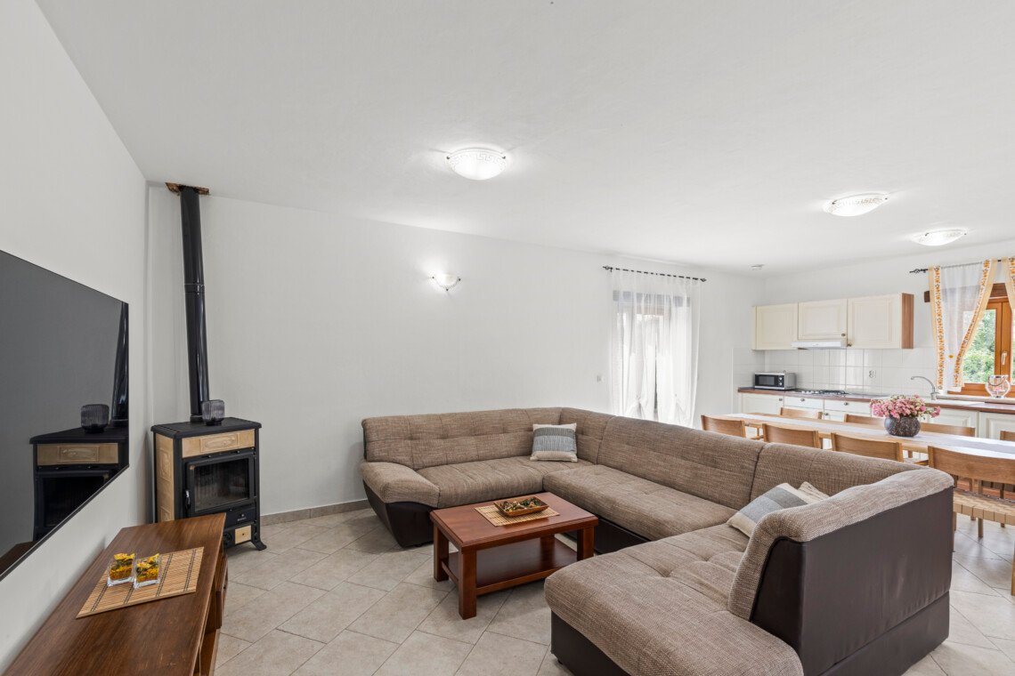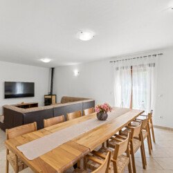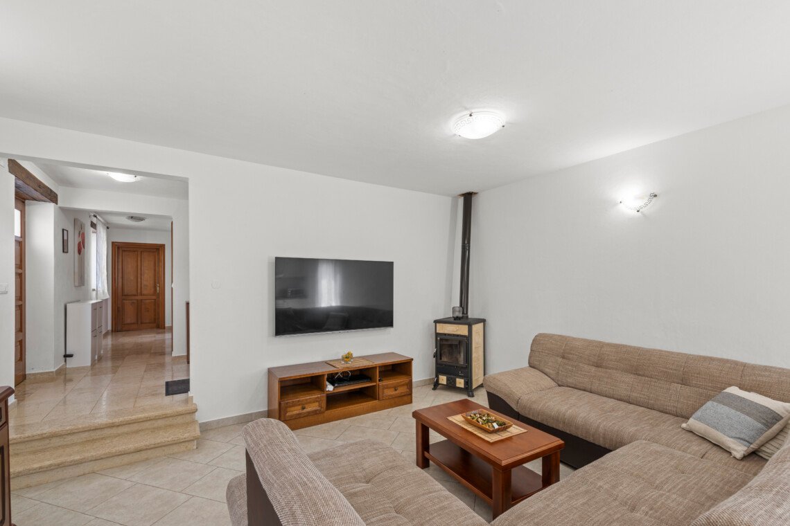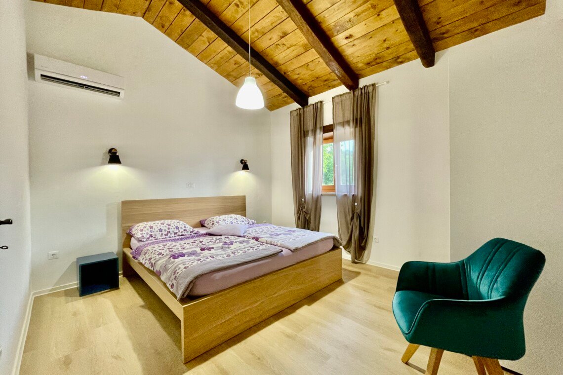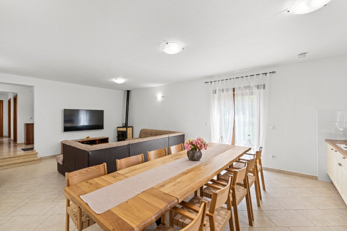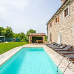 Stone old house which is renovated in 2016. is big and comfortable for 10 persons. It has 5 bedrooms and 3 bathrooms with big living space, dining area, kitchen and laundry room. Outside is big garden with swimming pool, barbecue, opened dining area and trampolin for your kids. Also in front of the house there are a private parkings places.