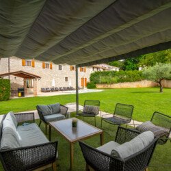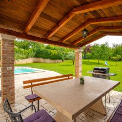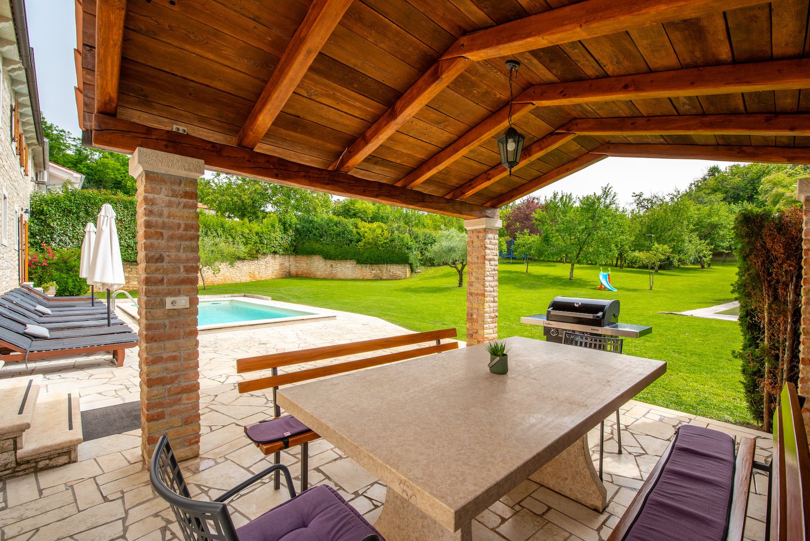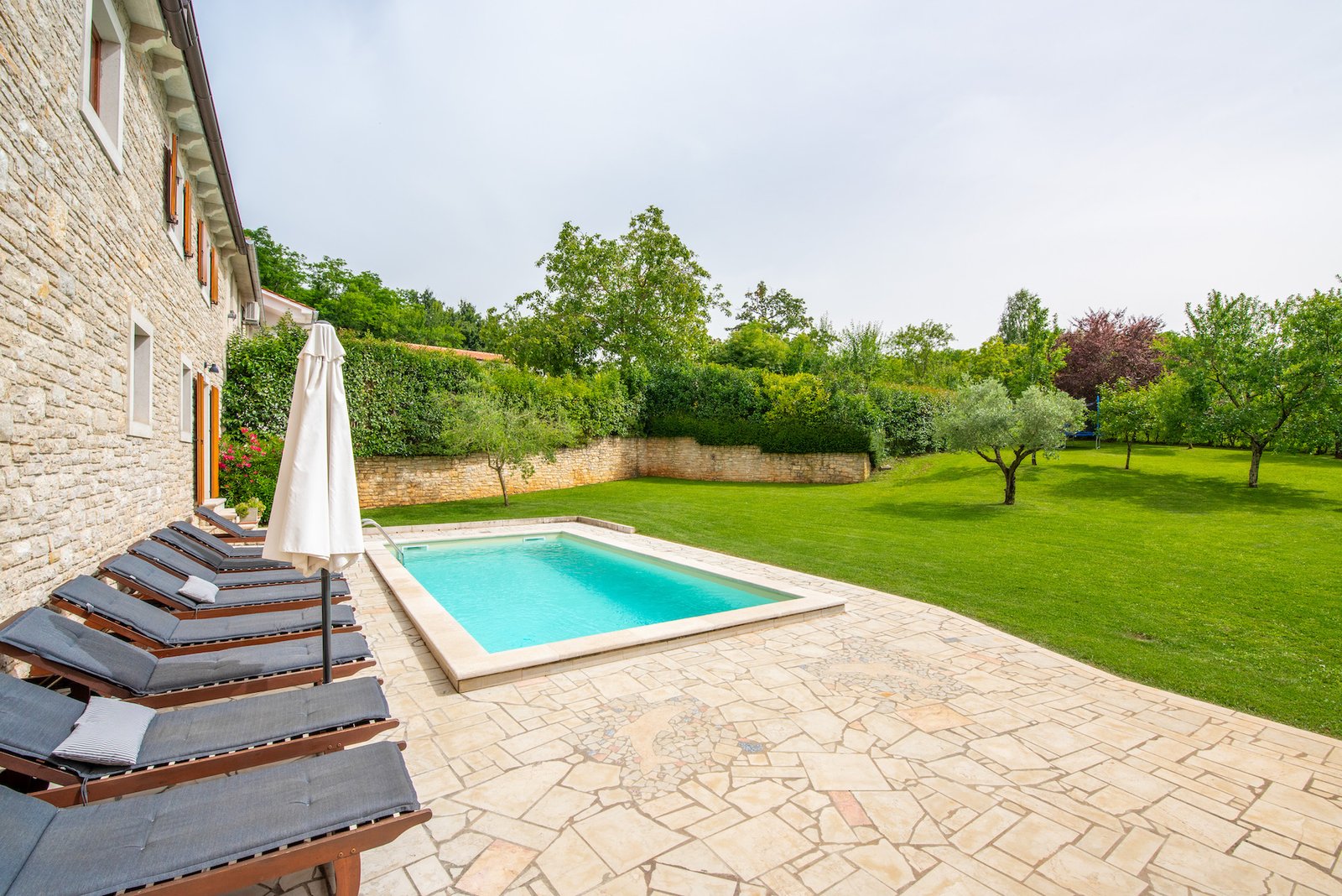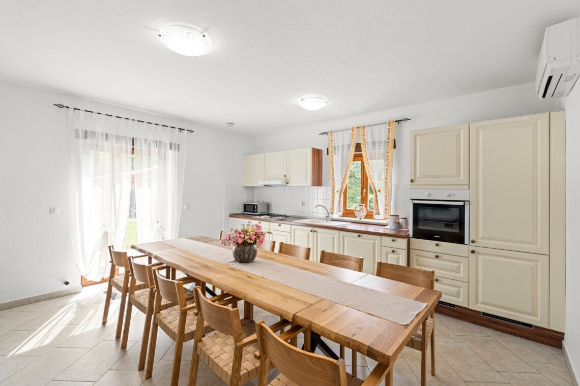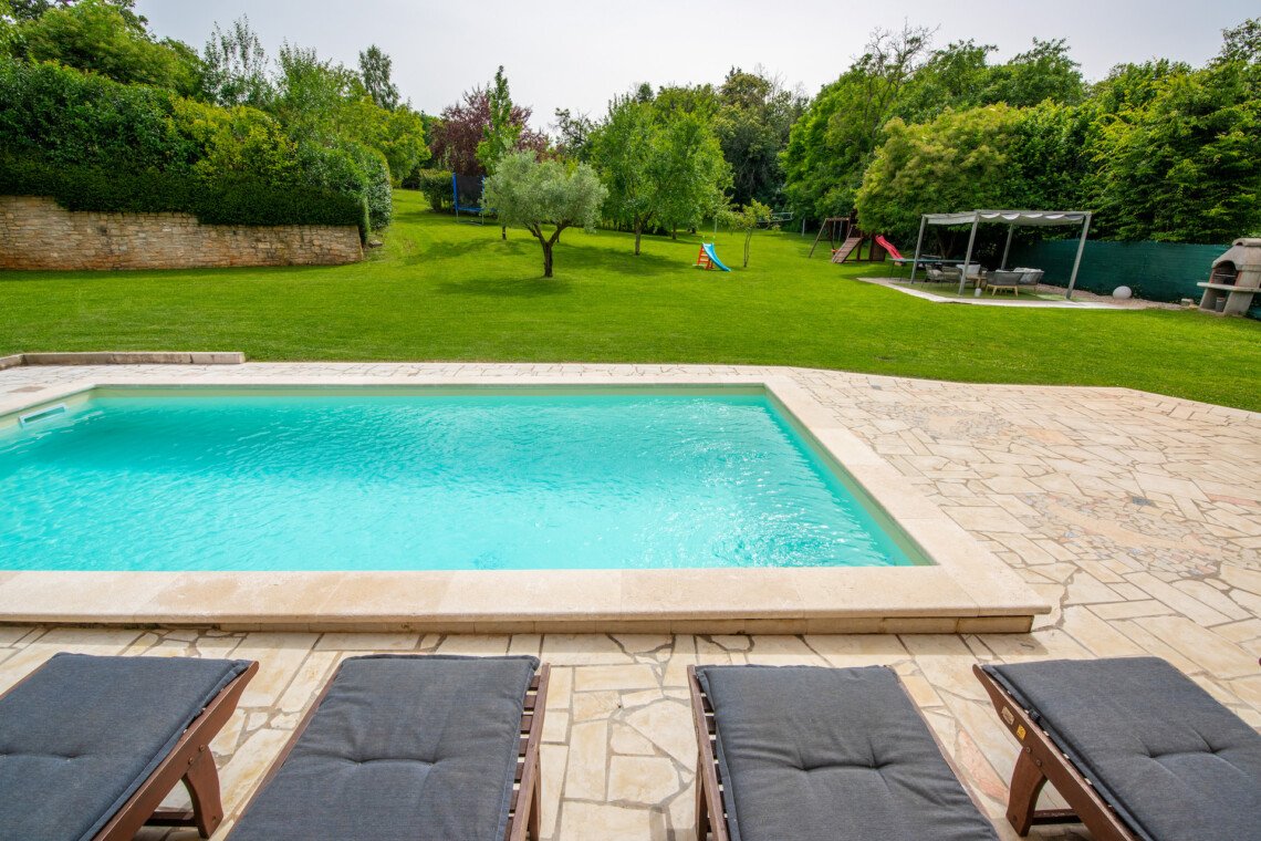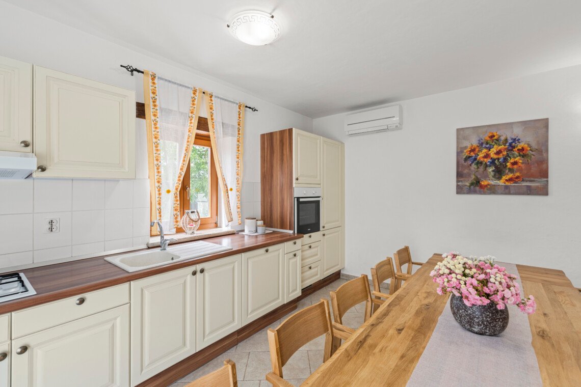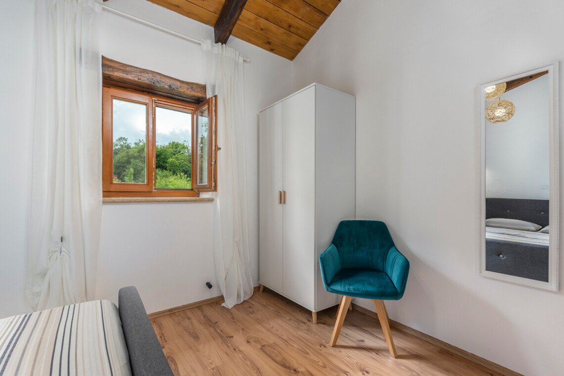 Stone old house which is renovated in 2016. is big and comfortable for 10 persons. It has 5 bedrooms and 3 bathrooms with big living space, dining area, kitchen and laundry room. Outside is big garden with swimming pool, barbecue, opened dining area and trampolin for your kids. Also in front of the house there are a private parkings places.