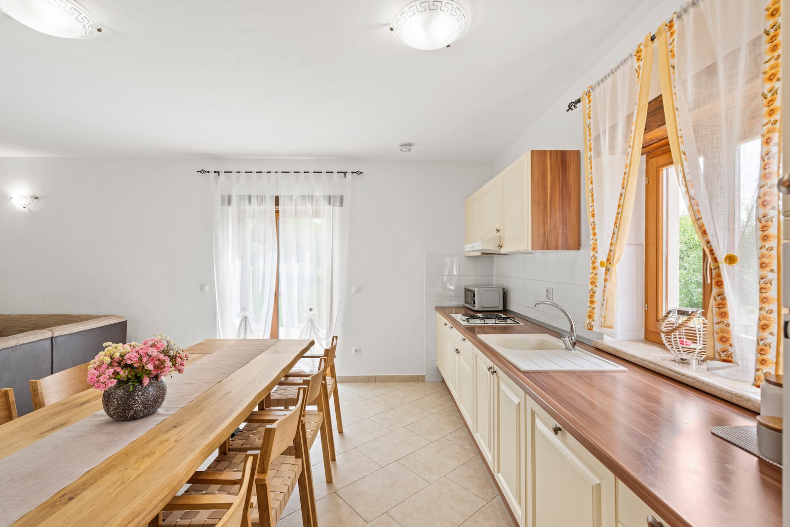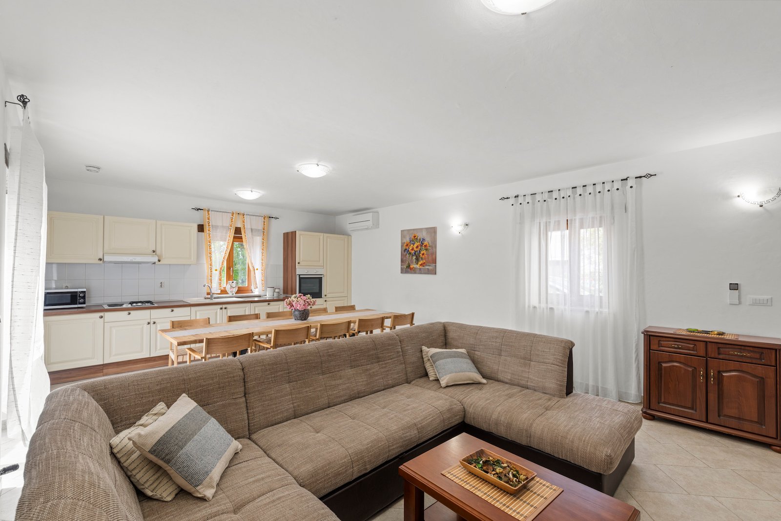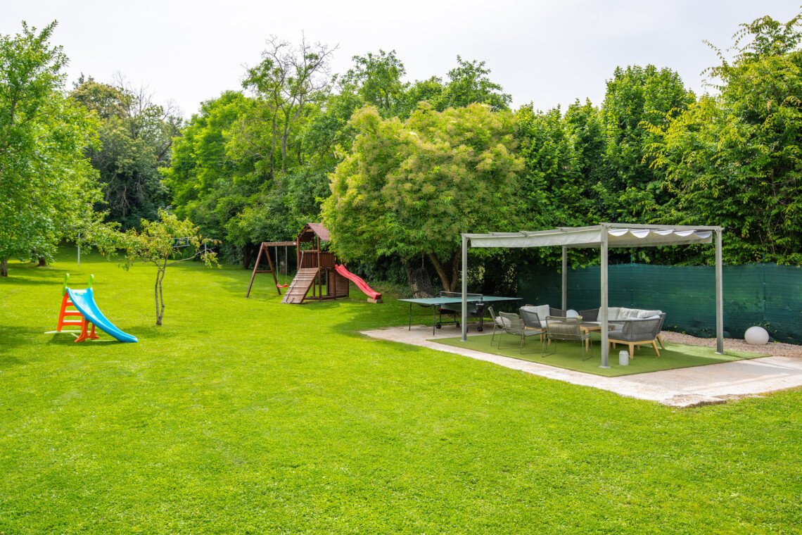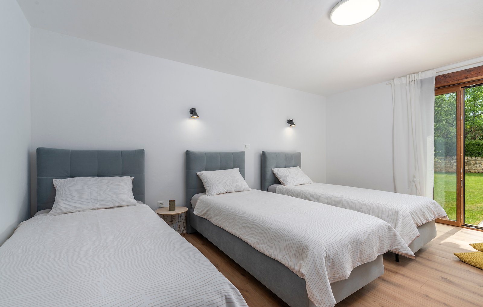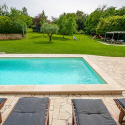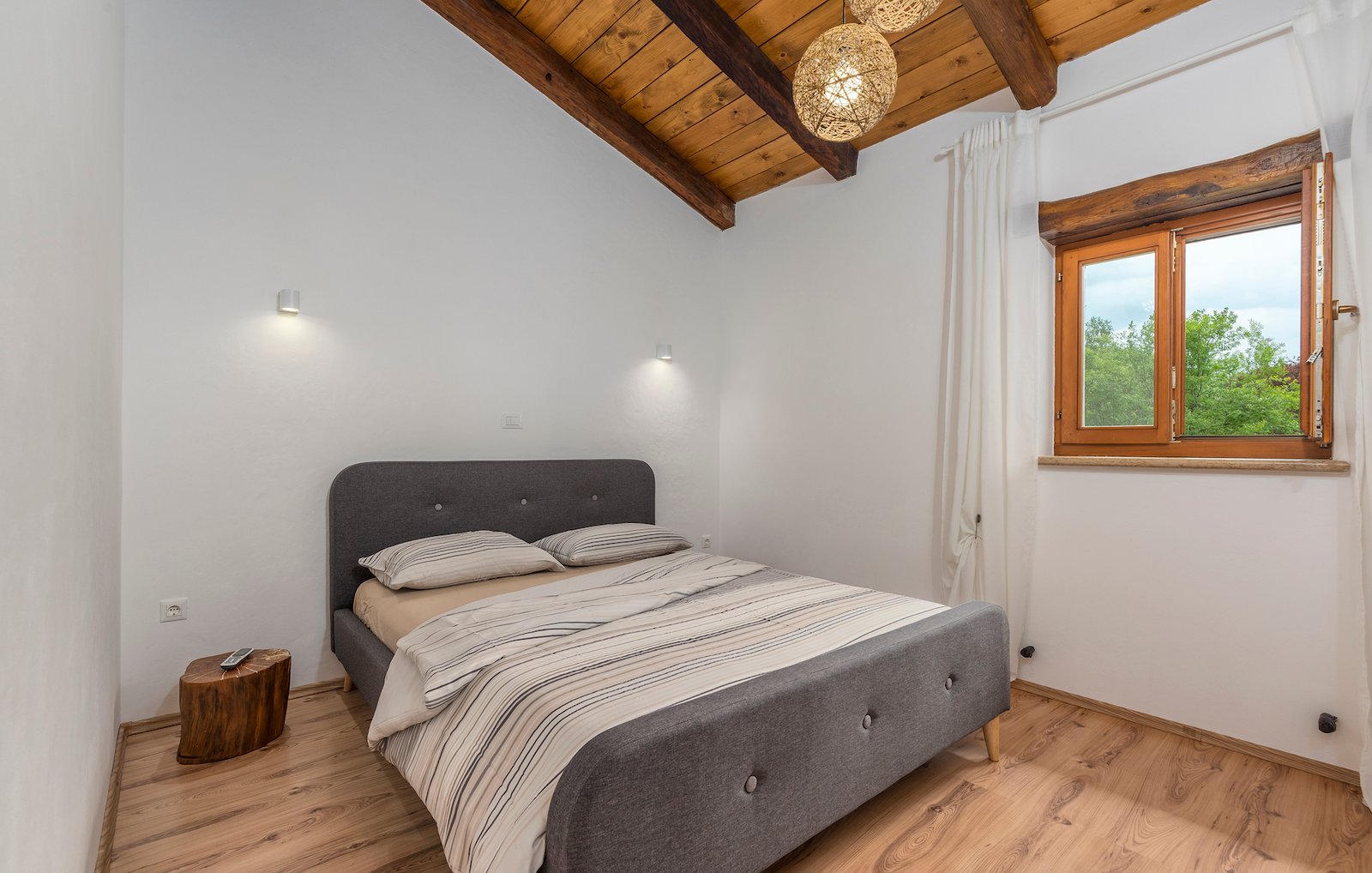Stone old house which is renovated in 2016. is big and comfortable for 10 persons. It has 5 bedrooms and 3 bathrooms with big living space, dining area, kitchen and laundry room. Outside is big garden with swimming pool, barbecue, opened dining area and trampolin for your kids. Also in front of the house there are a private parkings places.